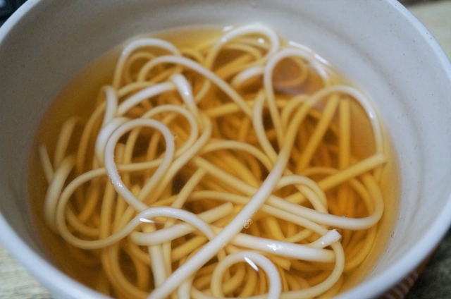 麺の太さは細いんですが、5分間煮出したおつゆを入れてみました。