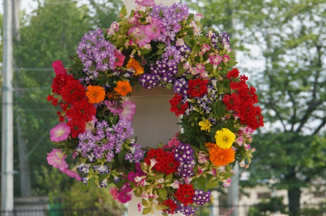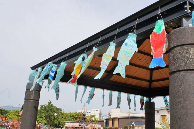 こどもの日なので、遊具公園のちかくは手作りこいのぼりでデコレーションされてました。