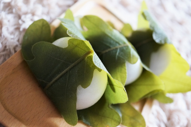 柏餅の葉っぱ、葉脈が外側になってるのは中身があんこ。内側になってたら味噌あんなんですって。