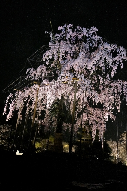 見上げるほどに大きくて立派な枝垂れ桜に圧倒されます。