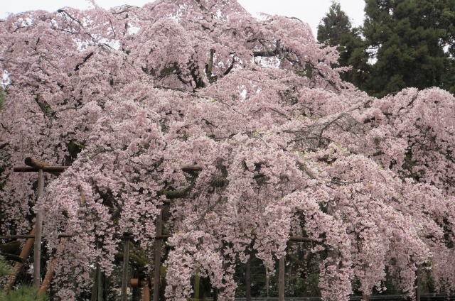 ここの枝垂れ桜は立派ですね。大きさもそうですけど、花の量も。