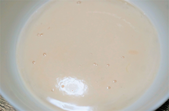 お湯で溶いたオリゴ糖(砂糖の代わり)にドライイーストを混ぜます。
