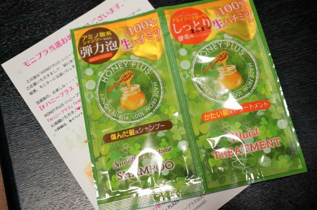 来年発売予定のHONEY PLUS(ハニープラス) シャンプー&トリートメントのサンプルをお試しさせてもらいましたよ。