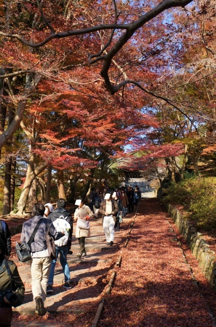 この緩やかなのぼり階段が人気スポットのようで、朝早ければ真っ赤な絨毯のように散った紅葉が敷き詰められるようです。