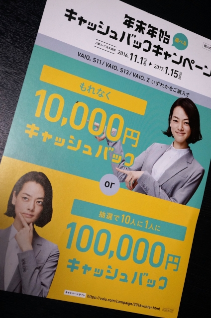 そして、今回買い替えのキッカケになったのがこのキャッシュバックと古いVAIO買い取りキャンペーン。