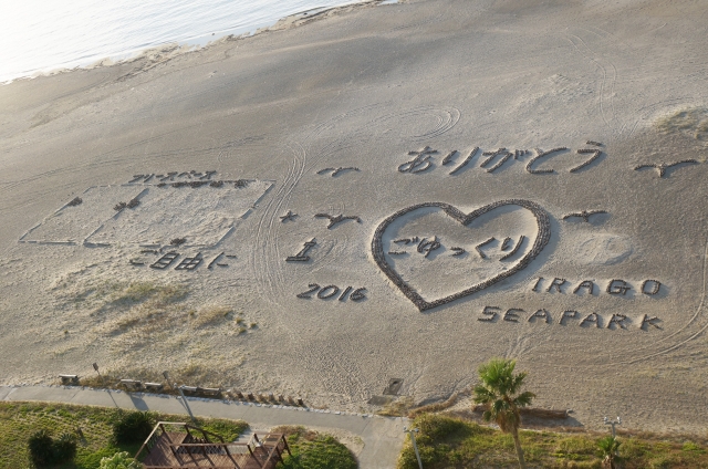 海に見とれて最初は気づかなかったんですが、砂浜を見ると素敵なアート。
