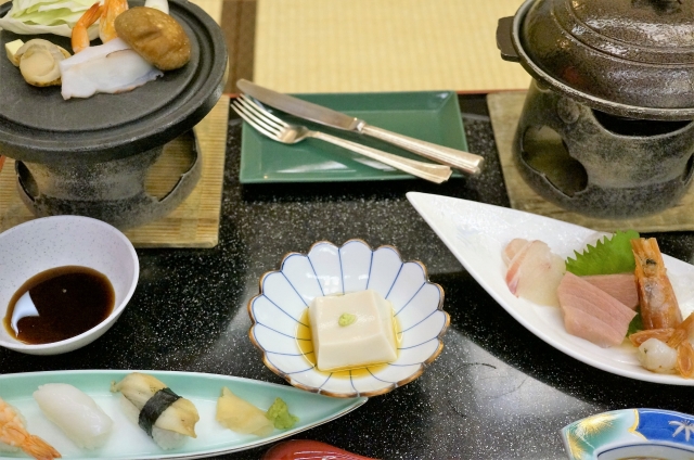 晩御飯は懐石で、地の物をたっぷり使ったお料理が並びます。