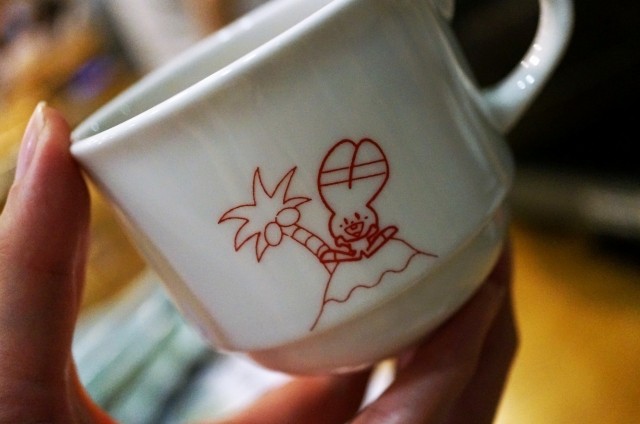 コーヒーカップの絵柄がダサかわいくて良かったです。