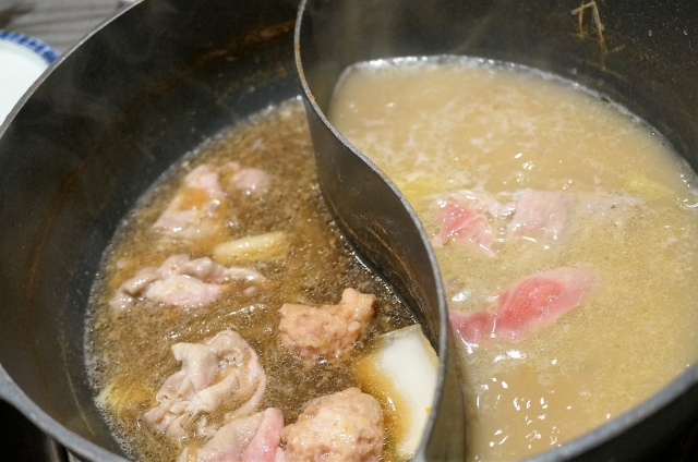 脂浮きまくった汚い鍋で申し訳ないですが、おだしも5種類から2つを選べます。
