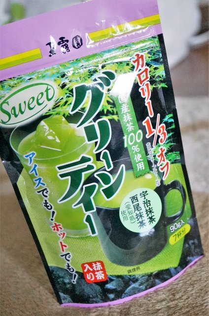 グリーンティーは甘ったるいイメージありますが、これはカロリー控えめなので安心ですね。