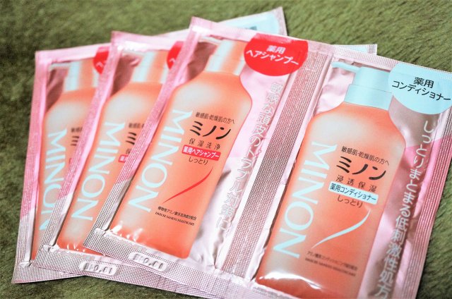 第一三共ヘルスケアさんから、ミノンの薬用ヘアシャンプとコンディショナーのお試しセットを頂きました~。
