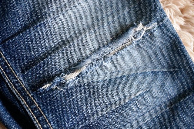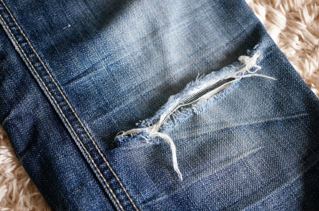 もともとダメージ仕様だったのですが、そのままはいてたらしゃがむ毎に穴が広がっていったので補修することに。