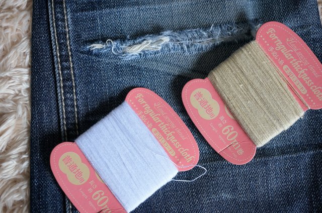 真っ白な糸よりも、少しくすんだベージュとかグレーの方がデニムの色となじむかも。