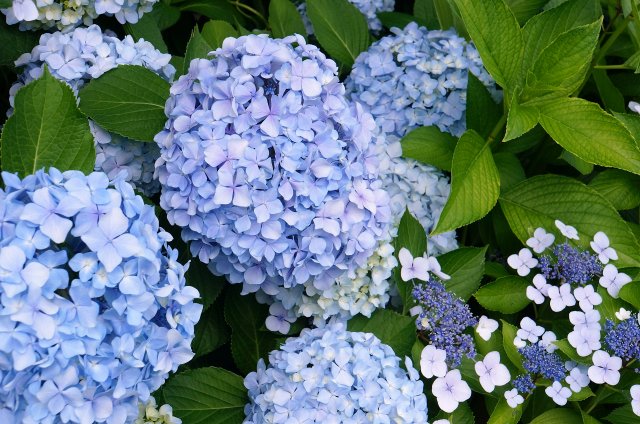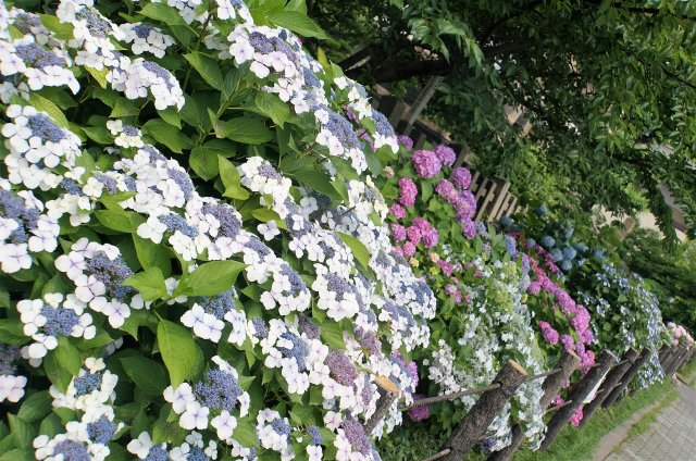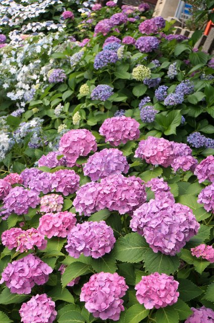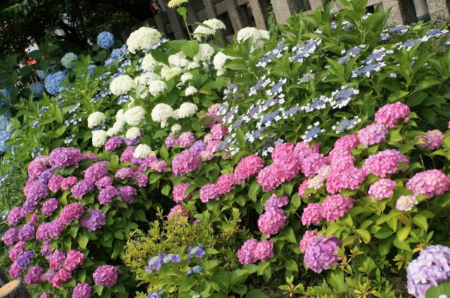 ちょうど見ごろで、色とりどりのアジサイがぎゅっと凝縮されて植えられている感じ。
