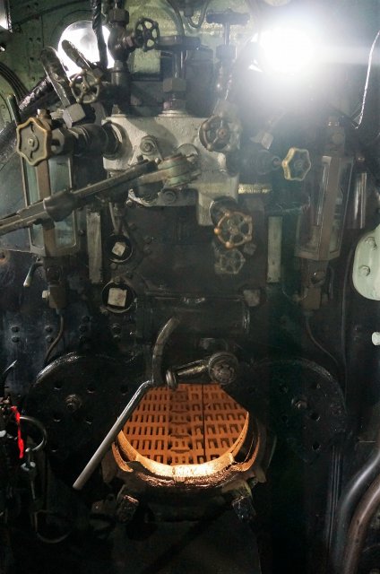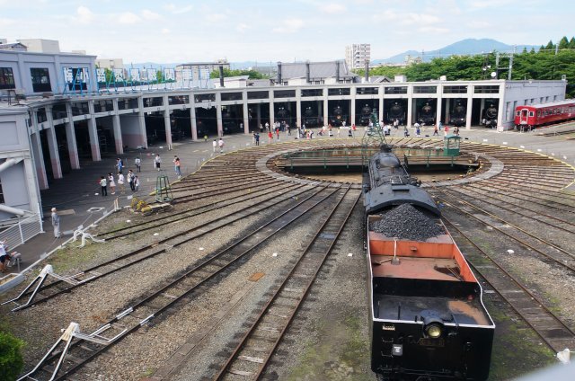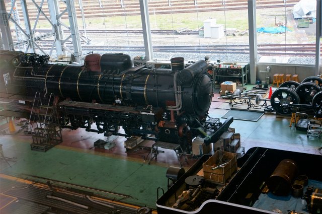 広場に向かう途中に、検修庫をのぞくとデゴイチの点検がされていました。
