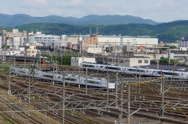 京都駅に乗り入れる電車の数は多いので、走ってくる電車も数分おきに見れます。