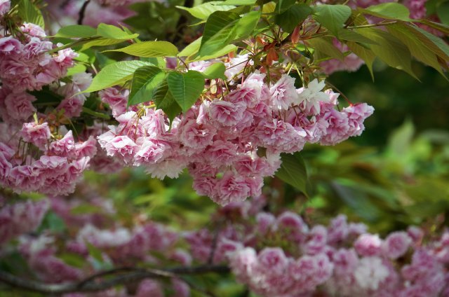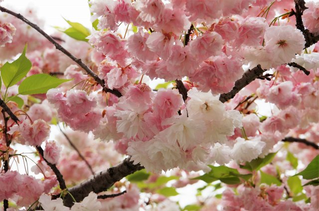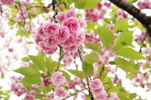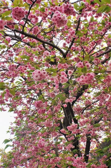 八重桜が多いのですが、ソメイヨシノと違って花はコンパクトでもボリュームがあるので枝がとっても重そうです。
