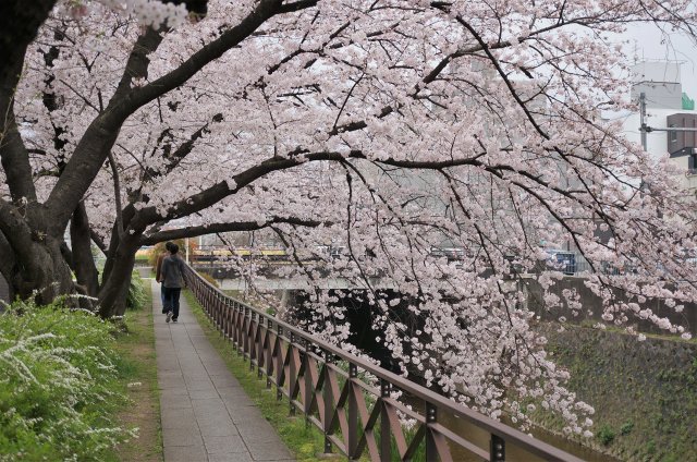 そこから天神川に向かうと、ほぼ満開に近い桜並木がずーっとつながってます。