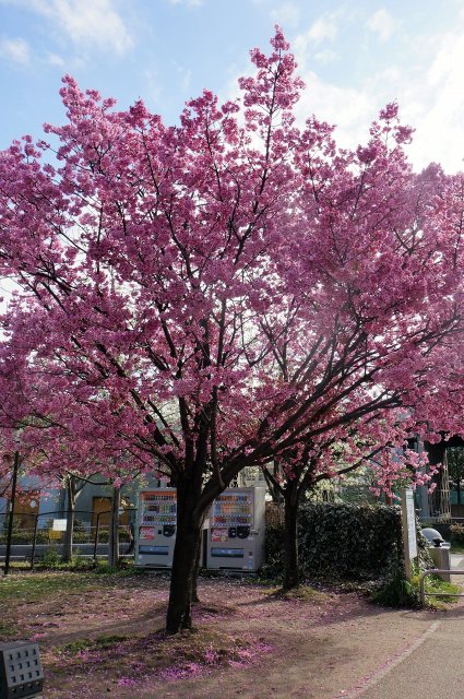 こないだ見にきてほぼ満開に近かった早咲きの桜はもう散りはじめでした。