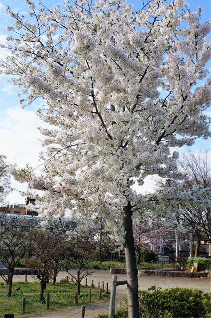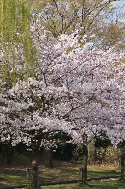 この木の下は結構お花見している人を見かけたのですが、まだ朝早いので場所取りの人もいませんね。