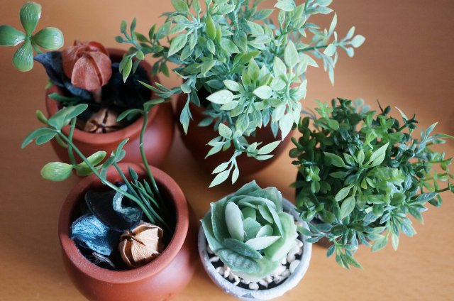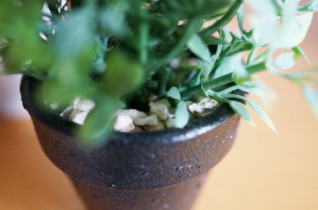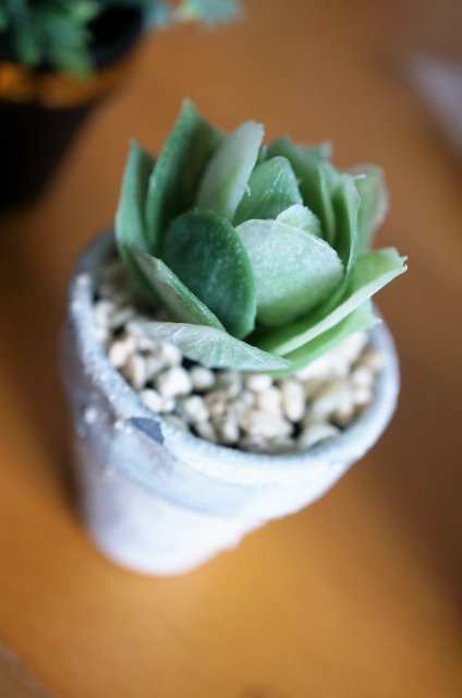 植物の世話を忘れて枯らしてしまうと悲しいので、手乗りサイズのフェイクグリーンを買ってきました。