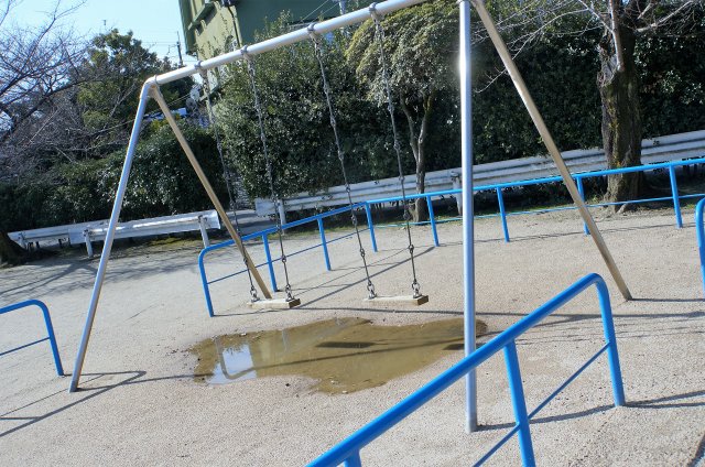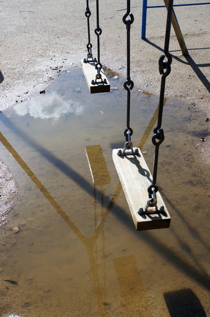 水たまりに映るブランコもなんだか哀愁があっていいものです。