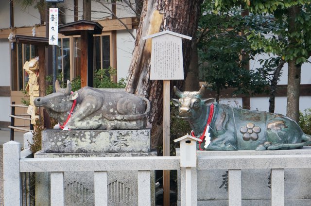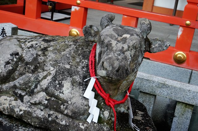愛らしい牛の像。古いので撫でられません…