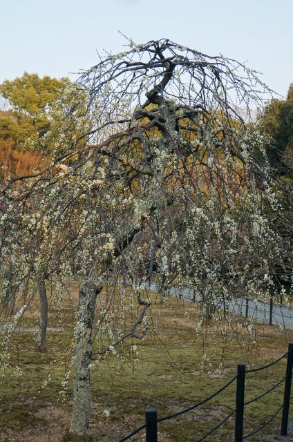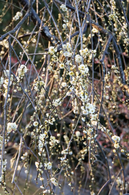 ここで一番目を惹かれたのは黄色っぽい枝垂れ梅。