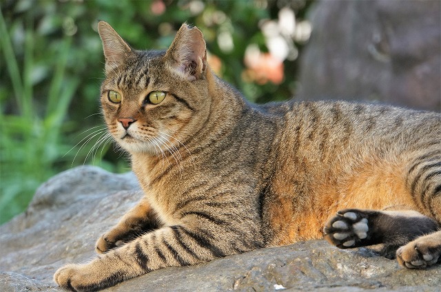 うちの近所のノラ猫さんは、おなか減ってて貧相な体つきが多いのですがこの子は良い体格してますね。