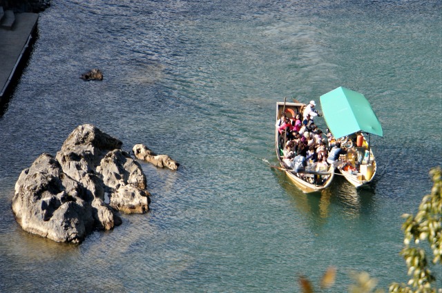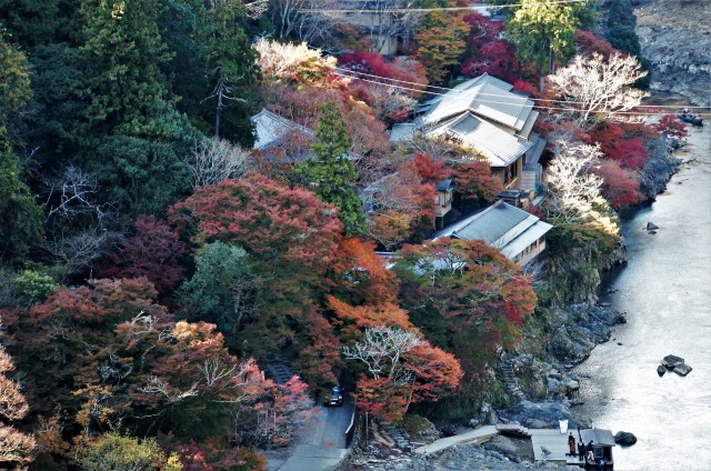 ひーひー良いながら展望所で保津峡を見るのも定番。