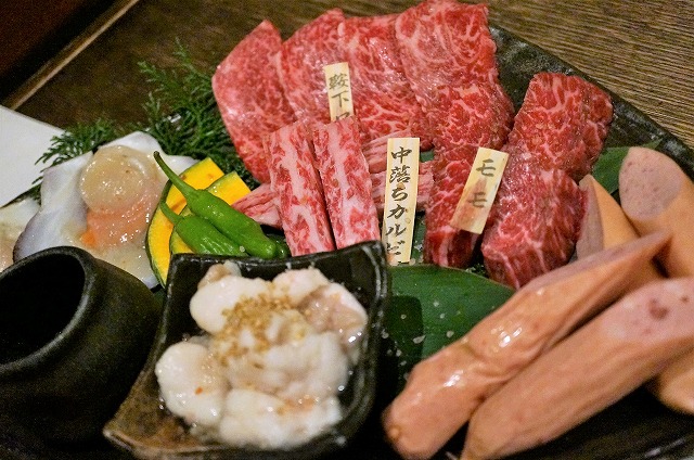 コース料理で、お肉はロース、カルビ、モモ、ウインナーなんかがありました。