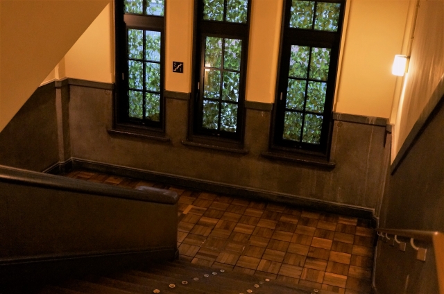 この、タイル状のフローリングとか私の通っていた学校にもあったような。
