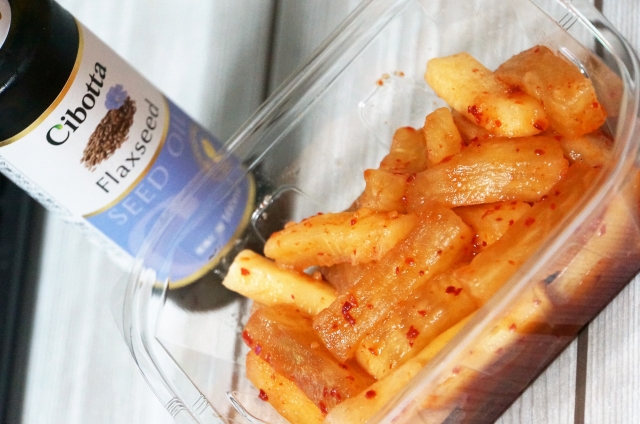 においがもともとキツいものならマシだとネットにあったのでキムチと合わせてみました。