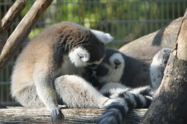 ワオキツネザルさんたちは仲良くいちゃいちゃ。