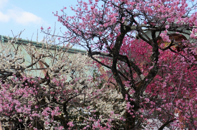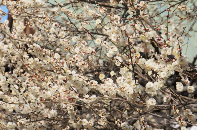 梅園の方は行かなかったのですが、境内でもたくさんの梅を見ることができます。