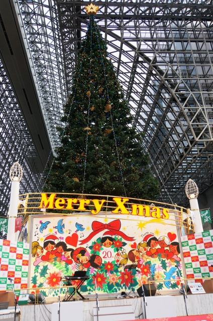 今年も、京都駅にはでっかいツリーが飾られています。