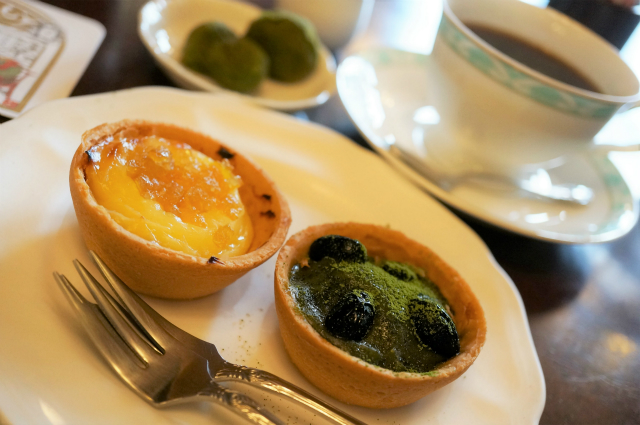 カフェに戻って、注文したメニューは小さなタルトのセット。