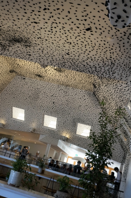 集合体恐怖症の私にはちょっと辛い内装なのですが、カフェで焼き立てバームクーヘンを食べることにしましたよ。