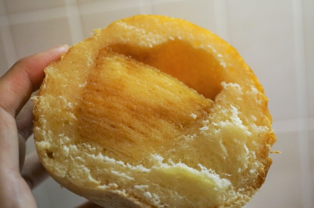 まん丸なパンを真っ二つに割ってみると中にバームクーヘンが!!!