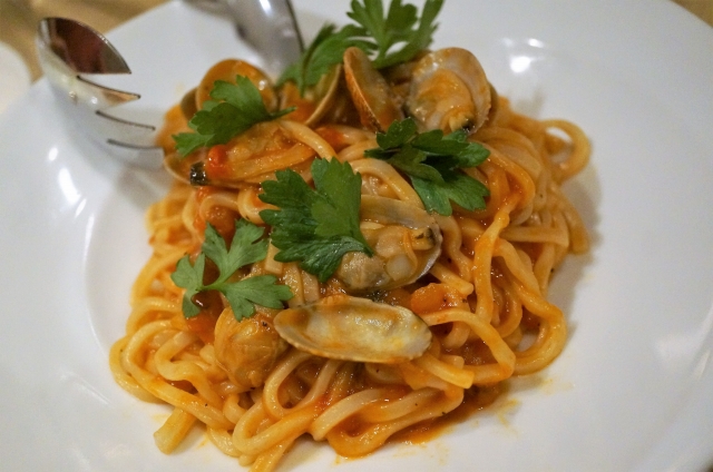 生パスタはボンゴレロッソ。これも良いダシ出てました。