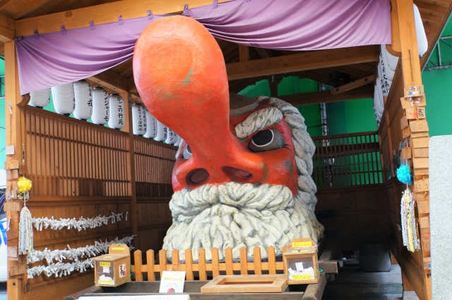 商店街の中心にあるやよい天狗。