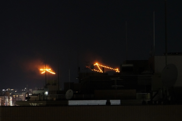 ビル群にちょっと阻まれてますが、妙法の送り火。