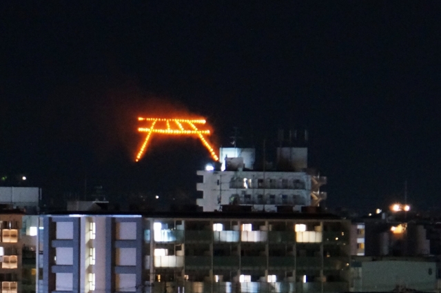 私の部屋からは鳥居形の送り火が見えるのは知っていたのですが、マンションの屋上から全ての送り火が見れることに初めて気が付きました。