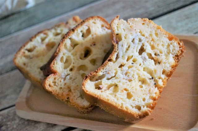 じつは一緒に食べた、ヨーグルトケーキにも入れてみたんですが、焼いてるときは鮮やかな色がついていたのに冷めたら色が抜けちゃった…