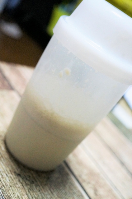 残りは200mlの調整豆乳+チアシードに入れて豆乳モリンガスムージーっぽく。